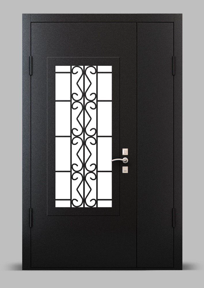 Прочная металлическая Дверь с витражами DZ630 по цене от 65 000 руб. под заказ в любой комплектации. Вы можете выбрать материал, замки, цилиндры и многое другое. Производим сами! Быстрая доставка и установка в Петергофе.