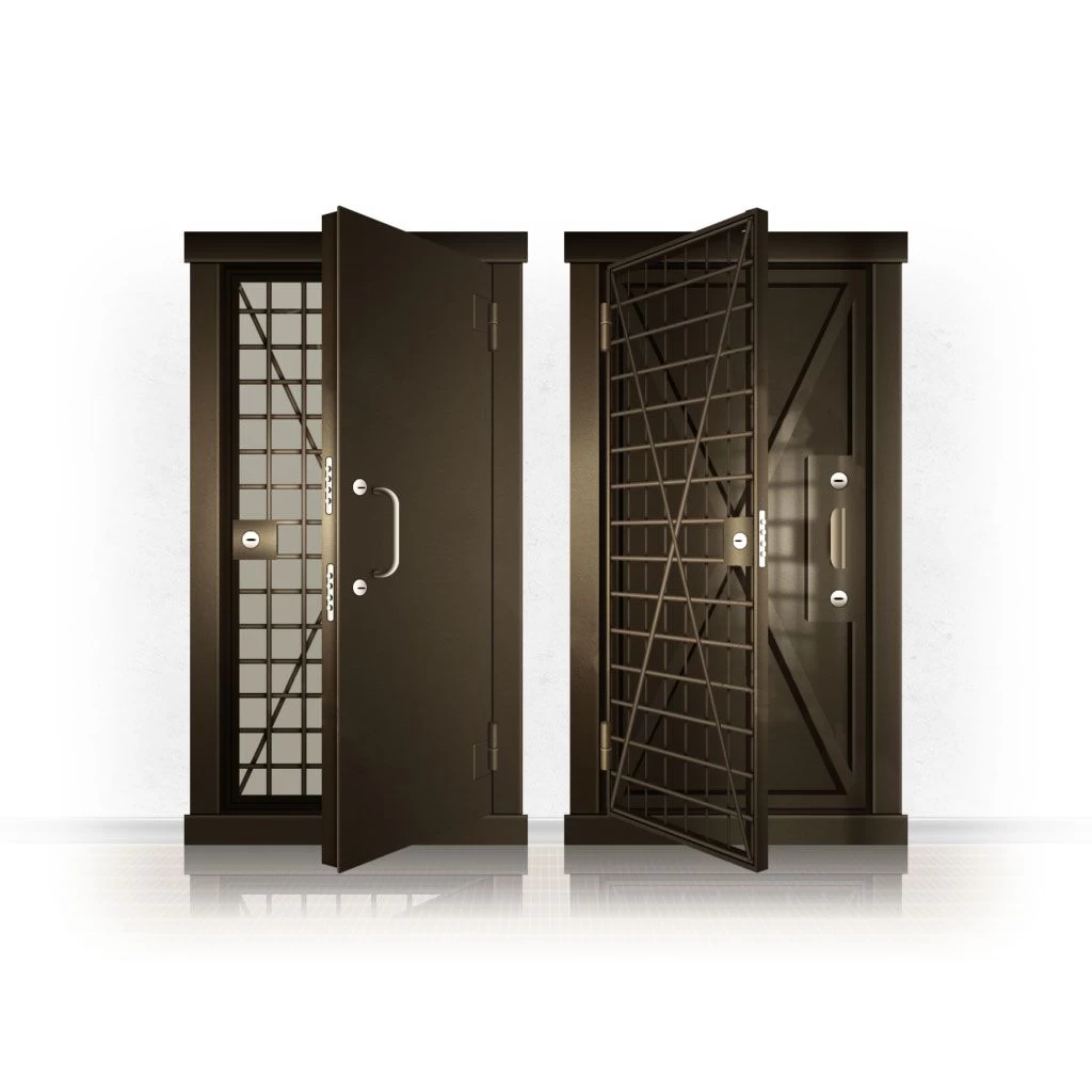Металлические двери КХО и КХН представляют собой входные блоки, обладающие высоким уровнем взломостойкости и состоят из трех основных элементов: усиленного каркаса, сплошного металлического полотна и решетчатой двери. Дверной блок изготавливается из стального уголка 100*100 мм. Места крепления блока к стене цементируются и закрываются стальными наличниками шириной 40 мм. Крепеж заходит вглубь стены на 80 мм. В конструкции внешней створки монтируются ребра жесткости, для обшивки используется сталь толщиной не менее 3 мм. Внутренняя решетка изготавливается из прутка диаметром 16 мм. Размер ячеек решетки должен составлять не более 15 на 15 см. В точках пересечения прутья надежно приваривают друг к другу. В КХО и КХН необходимо поддерживать определенную температуру и влажность. Для этого внутреннее пространство глухой двери заполняется теплоизоляционным материалом, а по периметру двери приклеивается уплотнитель. Такие двери оборудуются замками с повышенным уровнем взломостойкости. Специализированные двери КХО и КХН в Дзержинском могут быть оснащены сигнализацией, в конструкции могут быть проушины для навесного замка и элементами для опечатывания. Если идет речь о двери в комнату хранения оружия, в створке оборудуется окно для выдачи оружия и спец. средств, которое накрывается стальной дверцей.